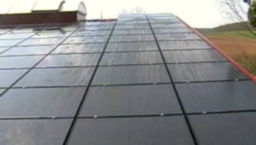 Projekt: Photovoltaik-Anlage Grimm - Modul-Typ: Sharp NA 901, dünn - Leistung: 120,9 KW/p - Fläche: 696 m² bei 10 Grad Dachneigung - Betriebsstart: 12/2009 - Veredelung fertig: 04/2010